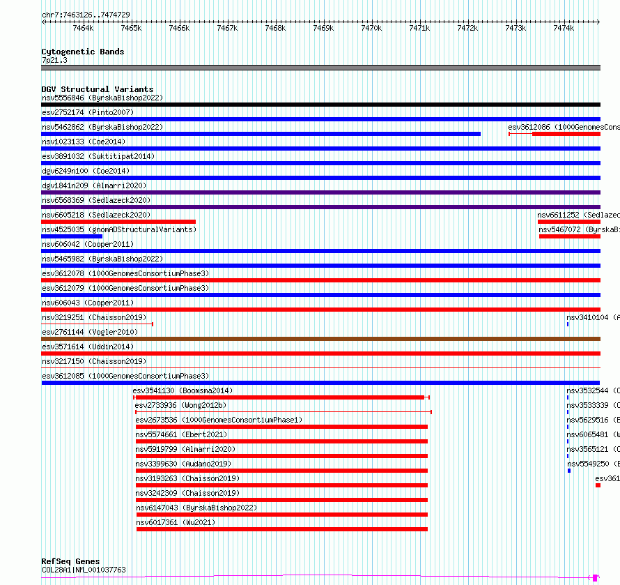 Variant DetailsVariant: esv3612085| Internal ID | 6998987 | | Landmark | | | Location Information | | | Cytoband | 7p21.3 | | Allele length | | Assembly | Allele length | | hg38 | 11604 | | hg19 | 11604 |