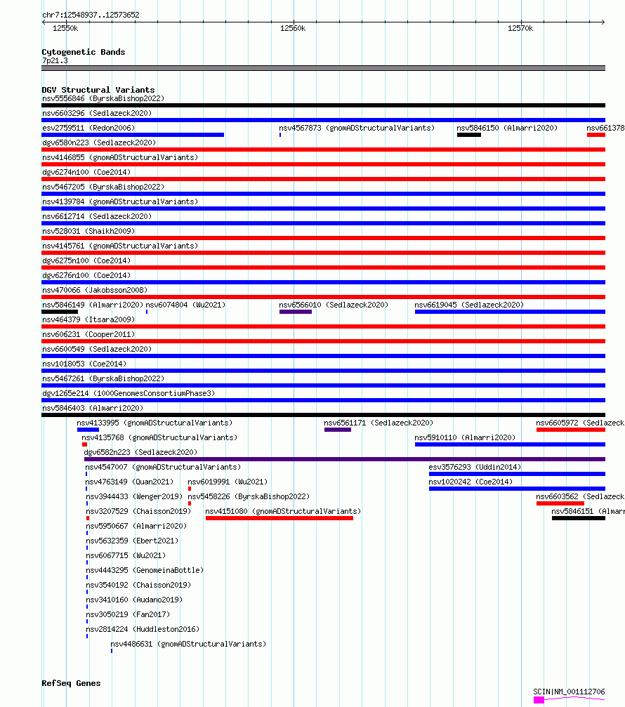| | Variant Type | CNV gain | | Copy Number | | | Allele State | | | Allele Origin | | | Probe Count | | | Validation Flag | | | Merged Status | M | | Merged Variants | dgv1265e214 | | Supporting Variants | essv12683760, essv12683759 | | Samples | HG03978, HG03742 | | Known Genes | SCIN | | Method | Sequencing | | Analysis | | | Platform | Multiple platforms | | Comments | | | Reference | 1000_Genomes_Consortium_Phase_3 | | Pubmed ID | 21293372 | | Accession Number(s) | esv3612262