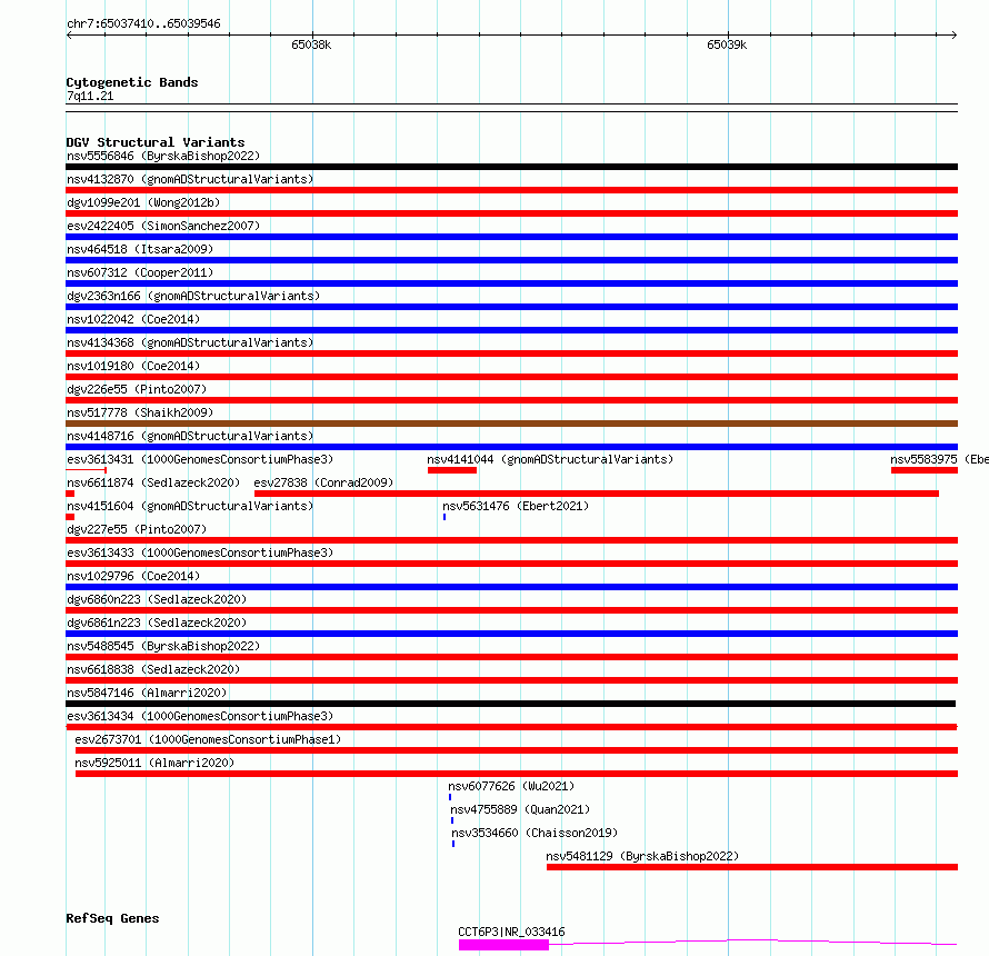| | Variant Type | CNV loss | | Copy Number | | | Allele State | | | Allele Origin | | | Probe Count | | | Validation Flag | | | Merged Status | M | | Merged Variants | | | Supporting Variants | essv12813461, essv12813475, essv12813455, essv12813472, essv12813477, essv12813463, essv12813490, essv12813469, essv12813478, essv12813494, essv12813501, essv12813491, essv12813479, essv12813486, essv12813471, essv12813484, essv12813452, essv12813460, essv12813464, essv12813473, essv12813465, essv12813459, essv12813497, essv12813468, essv12813487, essv12813485, essv12813457, essv12813480, essv12813470, essv12813451, essv12813482, essv12813489, essv12813454, essv12813474, essv12813476, essv12813453, essv12813483, essv12813493, essv12813492, essv12813458, essv12813495, essv12813496, essv12813466, essv12813488, essv12813498, essv12813481, essv12813456, essv12813462, essv12813499, essv12813500, essv12813467 | | Samples | NA19394, HG01986, HG03096, NA19701, NA19466, NA19332, NA20274, HG02433, HG03449, NA18917, HG03115, HG02476, NA19819, HG03190, HG01456, NA20332, HG02888, HG03452, HG03079, HG02505, HG02885, HG03195, HG02502, NA19200, NA19707, NA18933, NA19184, HG03291, HG02108, NA20126, NA18907, HG03202, HG01241, HG02884, HG02031, HG02568, HG02484, HG02613, NA20351, HG03304, NA19143, HG01912, HG03066, HG02938, HG03063, HG03351, NA19102, HG03077, HG03162, HG01431, HG02861 | | Known Genes | CCT6P3 | | Method | Sequencing | | Analysis | | | Platform | Multiple platforms | | Comments | | | Reference | 1000_Genomes_Consortium_Phase_3 | | Pubmed ID | 21293372 | | Accession Number(s) | esv3613434