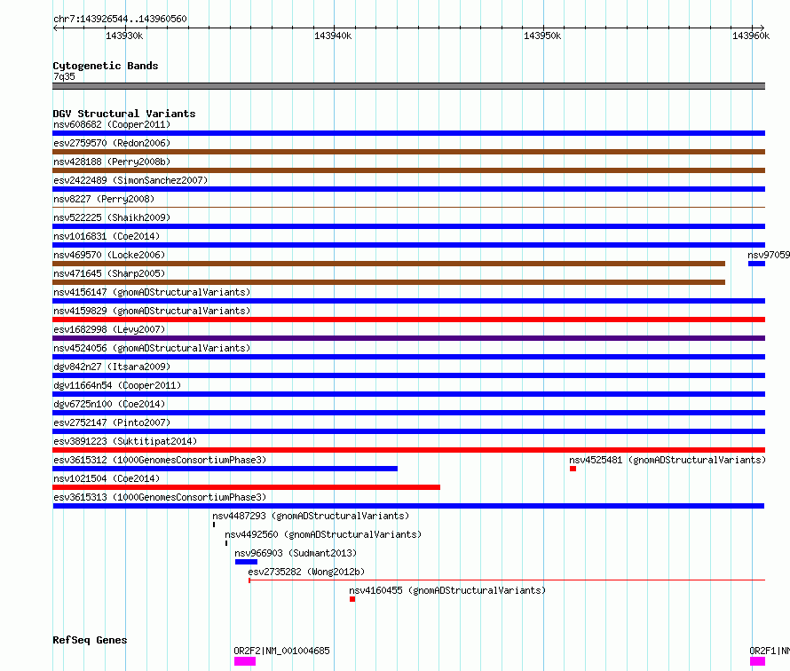 Variant DetailsVariant: esv3615313| Internal ID | 6655512 | | Landmark | | | Location Information | | | Cytoband | 7q35 | | Allele length | | Assembly | Allele length | | hg38 | 34017 | | hg19 | 34017 |