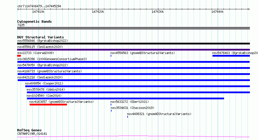 Variant DetailsVariant: esv3615396| Internal ID | 7002285 | | Landmark | | | Location Information | | | Cytoband | 7q35 | | Allele length | | Assembly | Allele length | | hg38 | 38816 | | hg19 | 38816 |