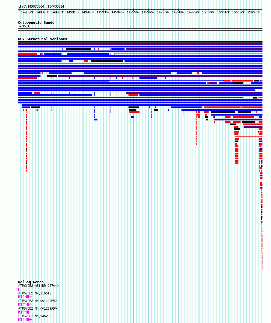 Variant DetailsVariant: esv3615439| Internal ID | 7002328 | | Landmark | | | Location Information | | | Cytoband | 7q36.1 | | Allele length | | Assembly | Allele length | | hg38 | 161661 | | hg19 | 161661 |