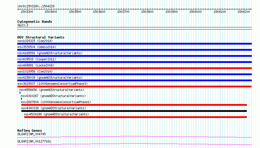 Variant DetailsVariant: esv3615837| Internal ID | 6656035 | | Landmark | | | Location Information | | | Cytoband | 8p23.3 | | Allele length | | Assembly | Allele length | | hg38 | 970 | | hg19 | 970 |