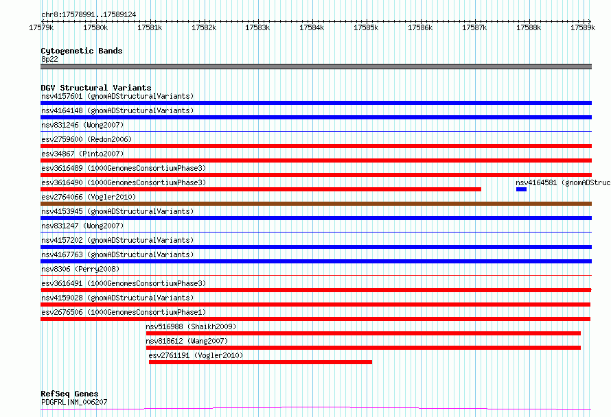 Variant DetailsVariant: esv3616491| Internal ID | 6656687 | | Landmark | | | Location Information | | | Cytoband | 8p22 | | Allele length | | Assembly | Allele length | | hg38 | 10134 | | hg19 | 10134 |