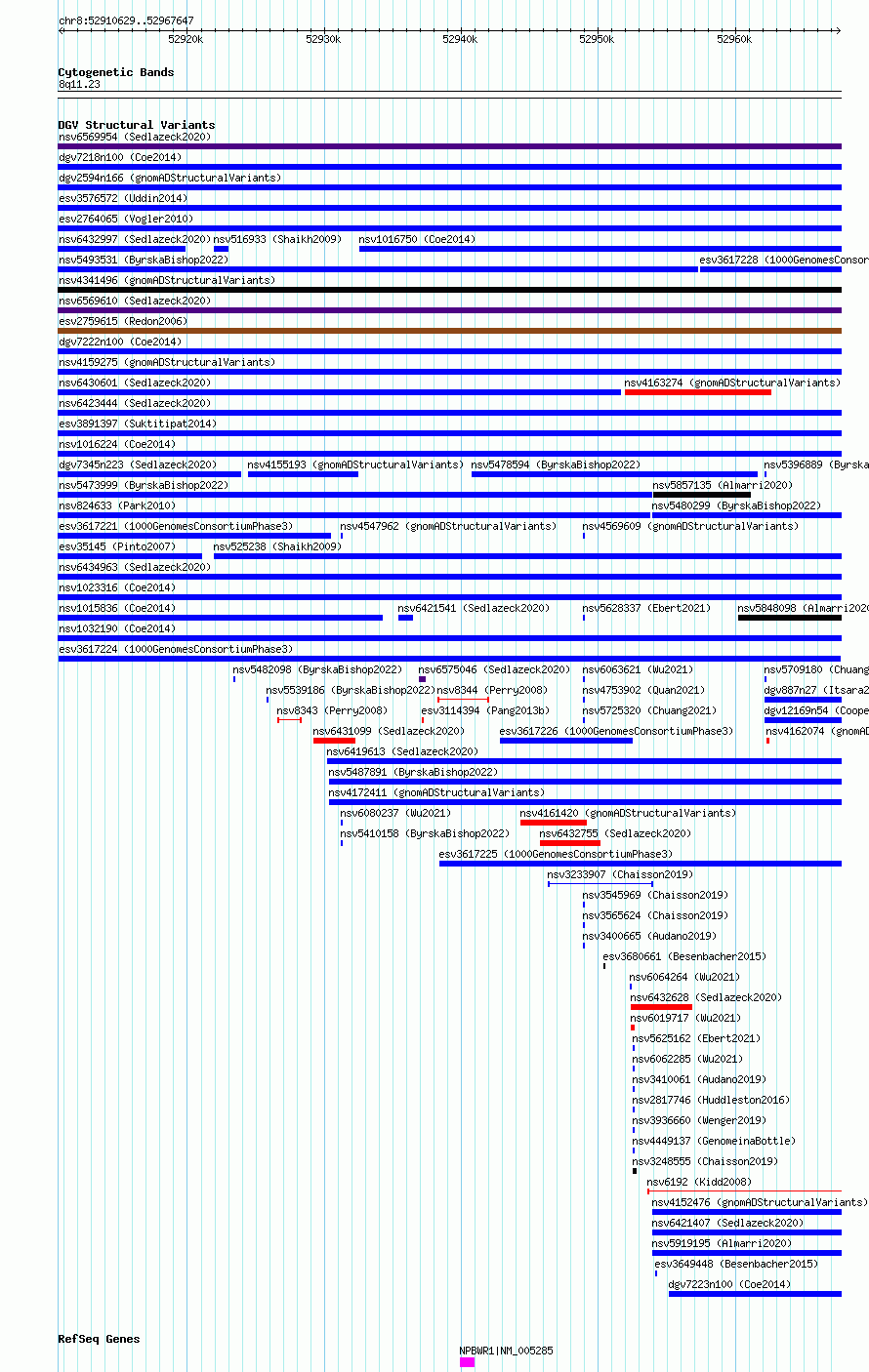Variant DetailsVariant: esv3617224| Internal ID | 7004110 | | Landmark | | | Location Information | | | Cytoband | 8q11.23 | | Allele length | | Assembly | Allele length | | hg38 | 57019 | | hg19 | 57019 |