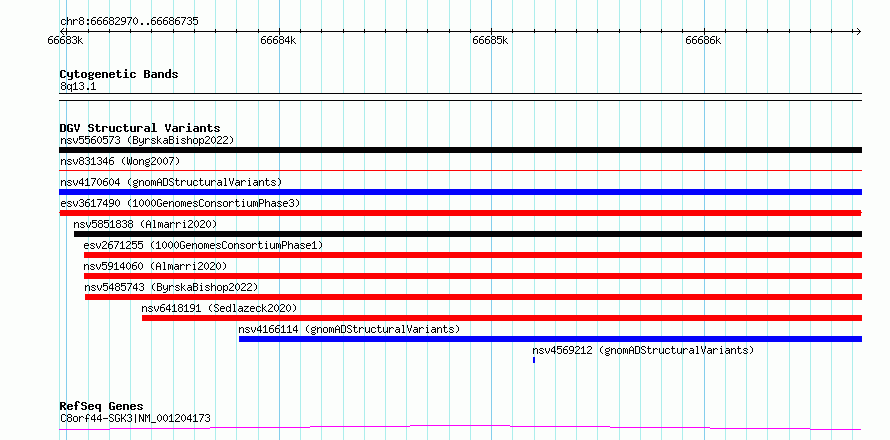 | Known Genes | C8orf44-SGK3 |