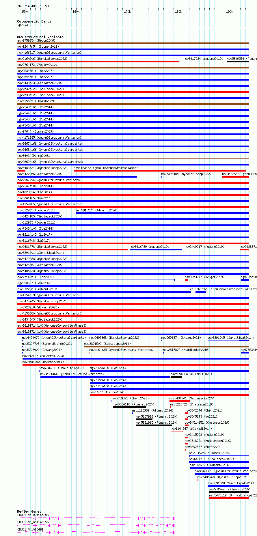 Variant DetailsVariant: esv3619172| Internal ID | 7006052 | | Landmark | | | Location Information | | | Cytoband | 9p24.3 | | Allele length | | Assembly | Allele length | | hg38 | 45098 | | hg19 | 45098 |