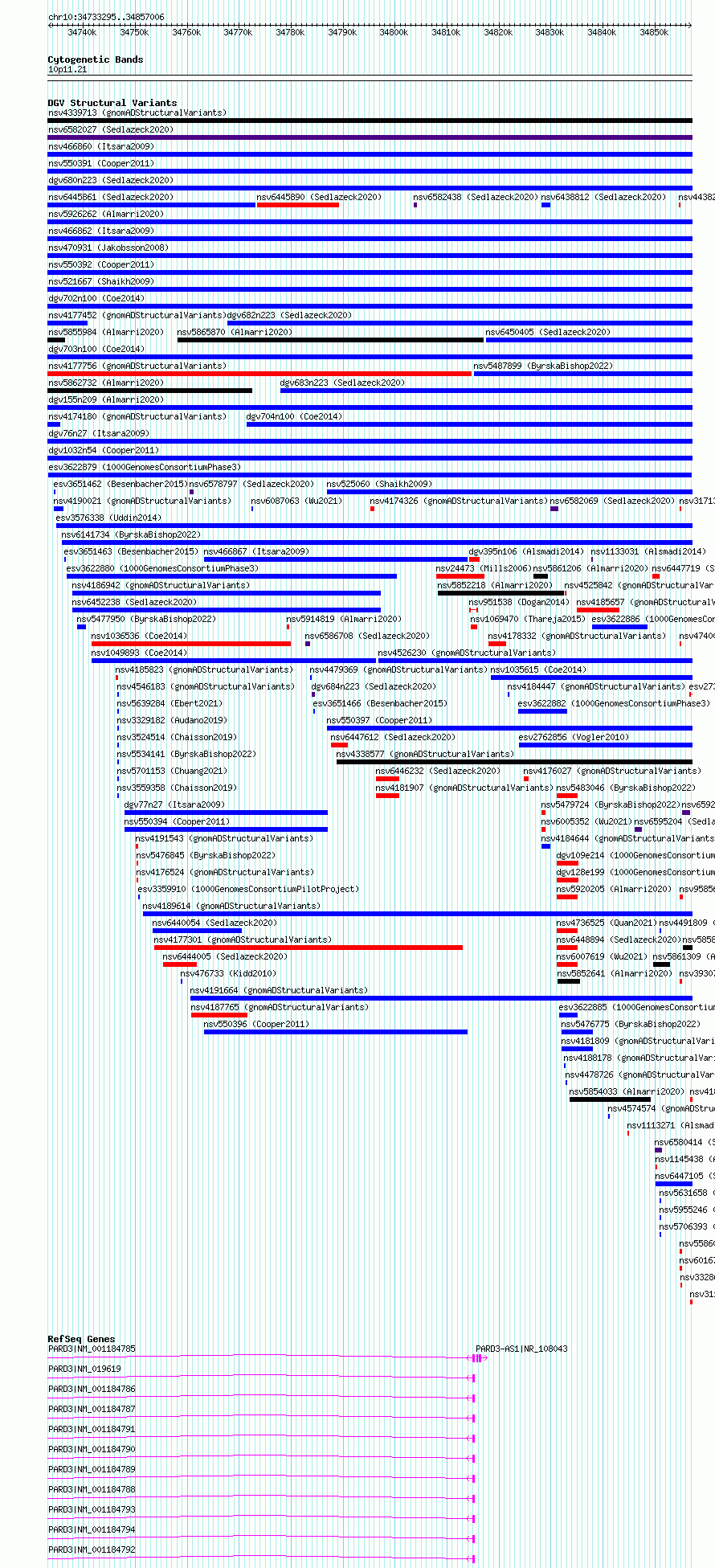 | | Variant Type | CNV gain | | Copy Number | | | Allele State | | | Allele Origin | | | Probe Count | | | Validation Flag | | | Merged Status | M | | Merged Variants | | | Supporting Variants | essv13752104 | | Samples | HG01775 | | Known Genes | PARD3, PARD3-AS1 | | Method | Sequencing | | Analysis | | | Platform | Multiple platforms | | Comments | | | Reference | 1000_Genomes_Consortium_Phase_3 | | Pubmed ID | 21293372 | | Accession Number(s) | esv3622879
