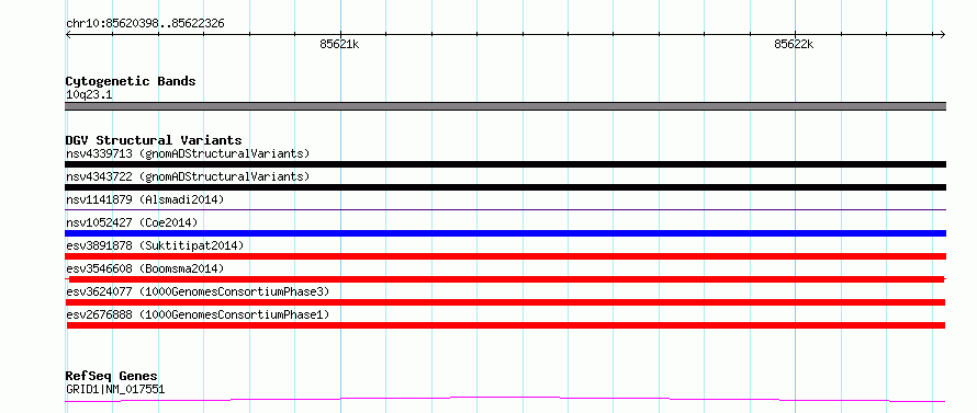 Variant DetailsVariant: esv3624077| Internal ID | 6664244 | | Landmark | | | Location Information | | | Cytoband | 10q23.1 | | Allele length | | Assembly | Allele length | | hg38 | 1929 | | hg19 | 1929 |