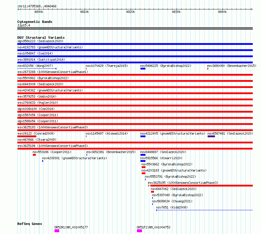 Variant DetailsVariant: esv3625194| Internal ID | 7012029 | | Landmark | | | Location Information | | | Cytoband | 11p15.4 | | Allele length | | Assembly | Allele length | | hg38 | 51099 | | hg19 | 51099 |