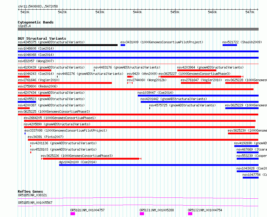 Variant DetailsVariant: esv3625225| Internal ID | 6665373 | | Landmark | | | Location Information | | | Cytoband | 11p15.4 | | Allele length | | Assembly | Allele length | | hg38 | 63976 | | hg19 | 63976 |
