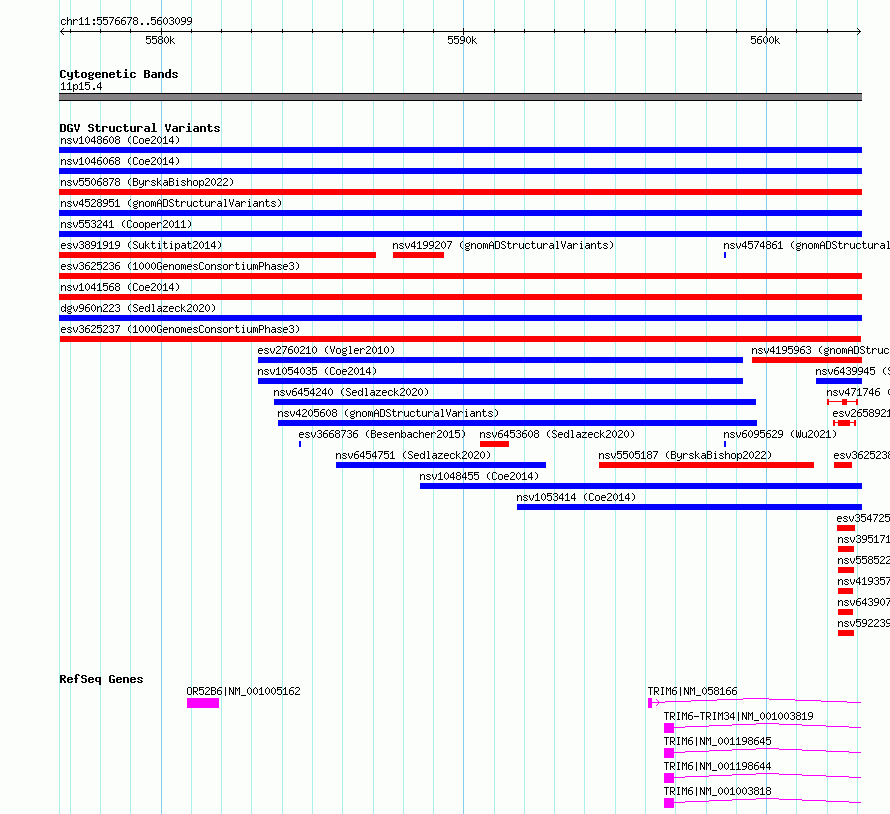 | Known Genes | OR52B6, TRIM6, TRIM6-TRIM34 |