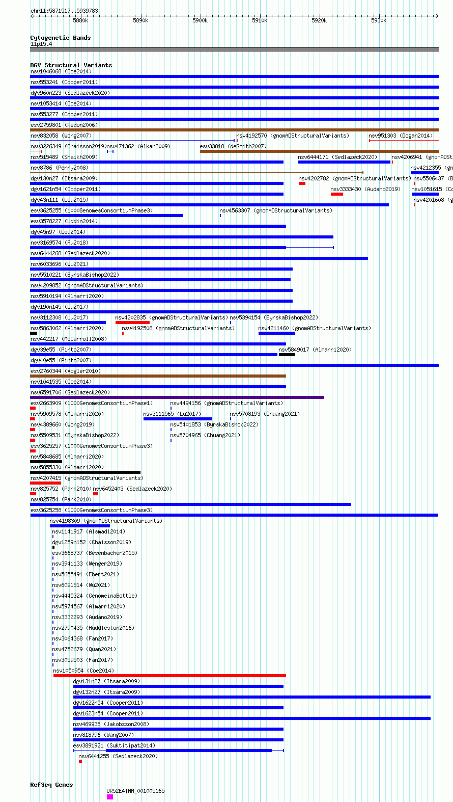Variant DetailsVariant: esv3625258 | Internal ID | 7012093 | | Landmark | | | Location Information | | | Cytoband | 11p15.4 | | Allele length | | Assembly | Allele length | | hg38 | 68267 | | hg19 | 68267 |
