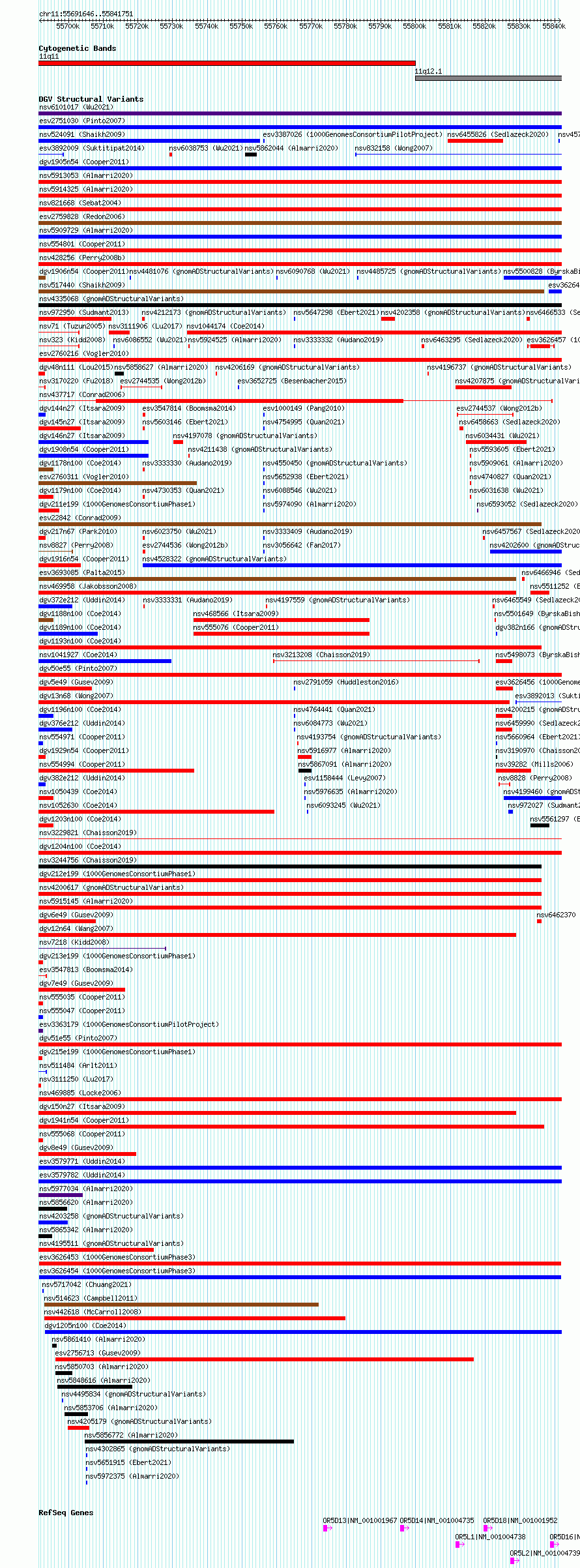 Variant DetailsVariant: esv3626453 | Internal ID | 7013285 | | Landmark | | | Location Information | | | Cytoband | 11q11 | | Allele length | | Assembly | Allele length | | hg38 | 150106 | | hg19 | 150106 |