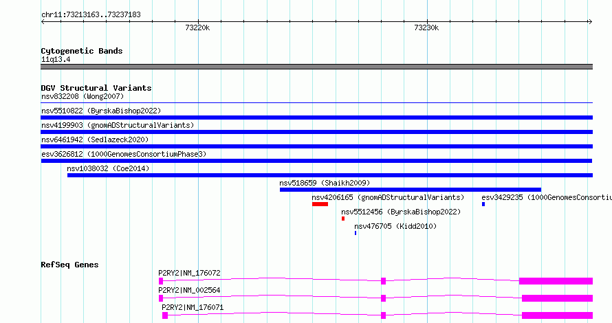 | | Variant Type | CNV gain | | Copy Number | | | Allele State | | | Allele Origin | | | Probe Count | | | Validation Flag | | | Merged Status | M | | Merged Variants | | | Supporting Variants | essv14212168, essv14212169, essv14212167, essv14212170, essv14212171 | | Samples | HG02888, HG03246, HG03225, HG02819, NA19346 | | Known Genes | P2RY2 | | Method | Sequencing | | Analysis | | | Platform | Multiple platforms | | Comments | | | Reference | 1000_Genomes_Consortium_Phase_3 | | Pubmed ID | 21293372 | | Accession Number(s) | esv3626812