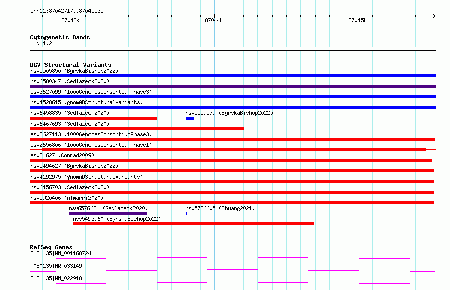 Variant DetailsVariant: esv3627113| Internal ID | 7013943 | | Landmark | | | Location Information | | | Cytoband | 11q14.2 | | Allele length | | Assembly | Allele length | | hg38 | 2819 | | hg19 | 2819 |