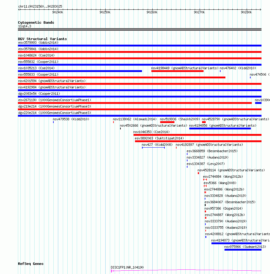 | Variant Type | CNV gain | Copy Number | | Allele State | | Allele Origin | | Probe Count | | Validation Flag | | Merged Status | M | Merged Variants | dgv220e214 | Supporting Variants | essv14231041, essv14231040 | Samples | NA19355, NA19756 | Known Genes | DISC1FP1 | Method | Sequencing | Analysis | | Platform | Multiple platforms | Comments | | Reference | 1000_Genomes_Consortium_Phase_3 | Pubmed ID | 21293372 | Accession Number(s) | esv3627197