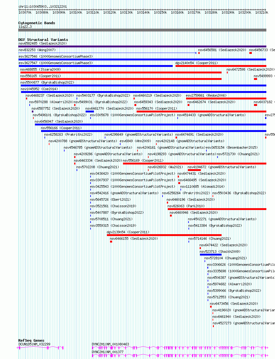 Variant DetailsVariant: esv3627546| Internal ID | 7014374 | | Landmark | | | Location Information | | | Cytoband | 11q22.3 | | Allele length | | Assembly | Allele length | | hg38 | 146299 | | hg19 | 146299 |