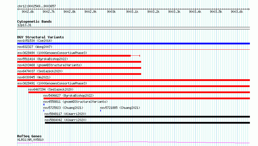Variant DetailsVariant: esv3628491| Internal ID | 7015315 | | Landmark | | | Location Information | | | Cytoband | 12p13.31 | | Allele length | | Assembly | Allele length | | hg38 | 1109 | | hg19 | 1109 |