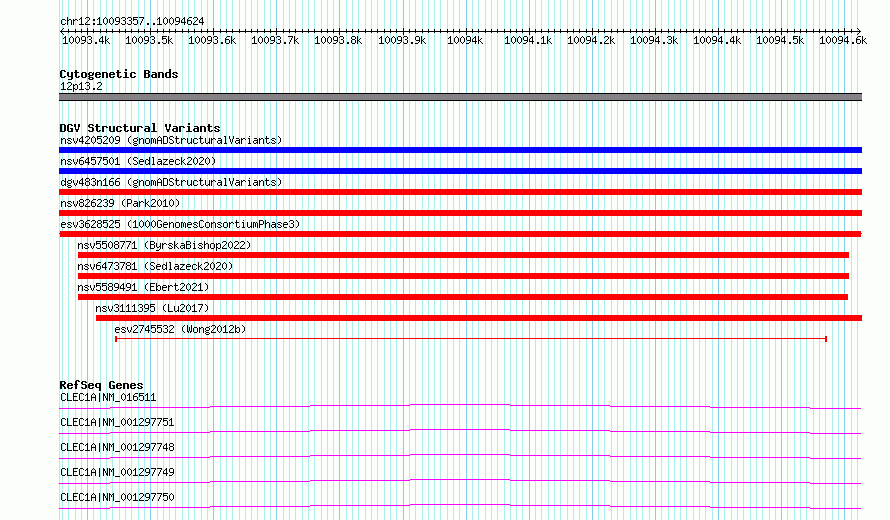 Variant DetailsVariant: esv3628525 | Internal ID | 7015349 | | Landmark | | | Location Information | | | Cytoband | 12p13.2 | | Allele length | | Assembly | Allele length | | hg38 | 1268 | | hg19 | 1268 |