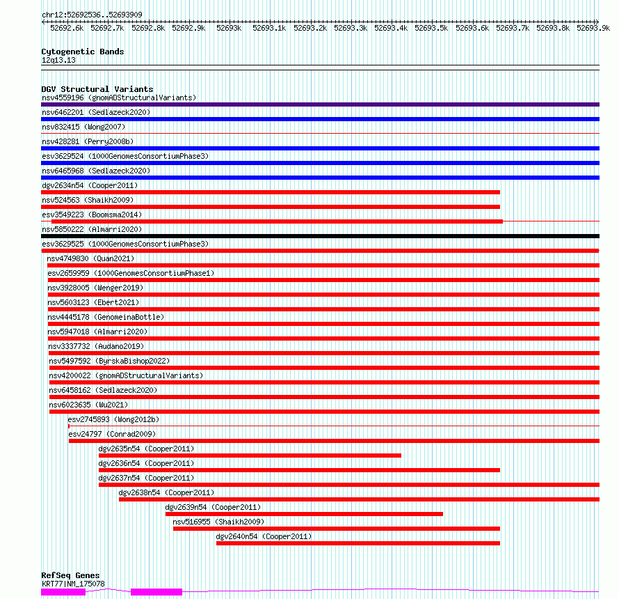 Variant DetailsVariant: esv3629525 | Internal ID | 7016346 | | Landmark | | | Location Information | | | Cytoband | 12q13.13 | | Allele length | | Assembly | Allele length | | hg38 | 1374 | | hg19 | 1374 |