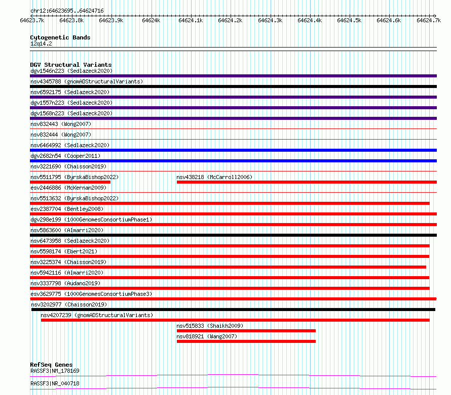 Variant DetailsVariant: esv3629775 | Internal ID | 7016596 | | Landmark | | | Location Information | | | Cytoband | 12q14.2 | | Allele length | | Assembly | Allele length | | hg38 | 1022 | | hg19 | 1022 |