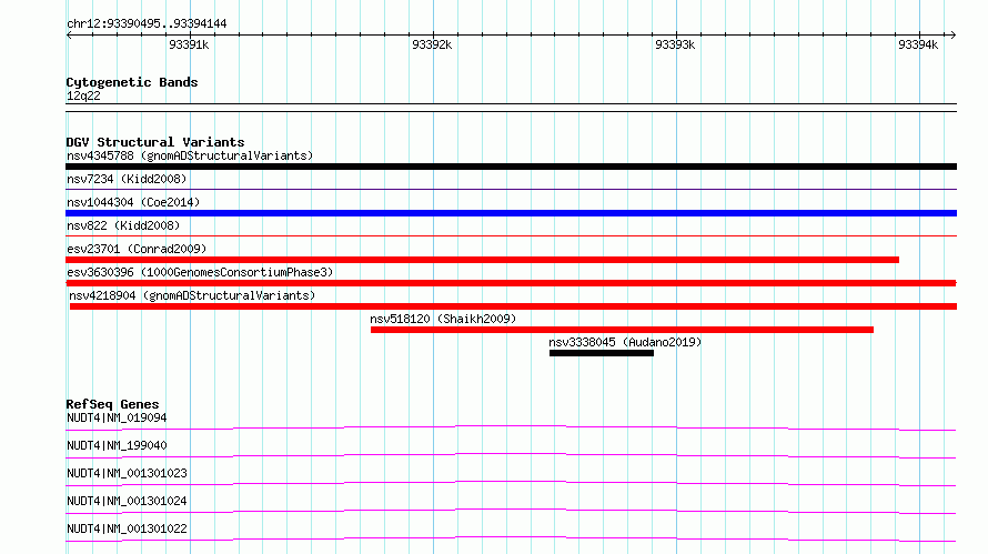 Variant DetailsVariant: esv3630396| Internal ID | 6670533 | | Landmark | | | Location Information | | | Cytoband | 12q22 | | Allele length | | Assembly | Allele length | | hg38 | 3650 | | hg19 | 3650 |