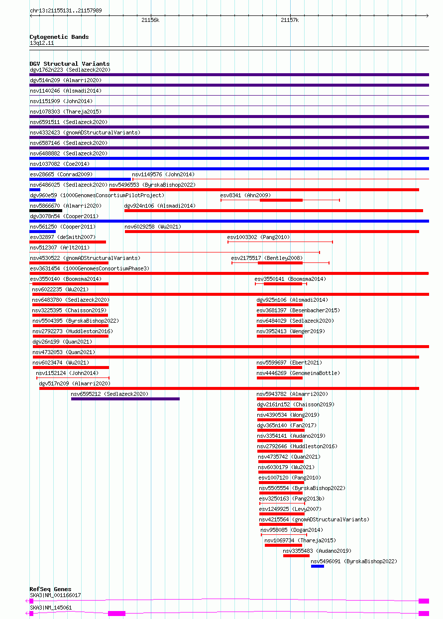 | | Variant Type | CNV loss | | Copy Number | | | Allele State | | | Allele Origin | | | Probe Count | | | Validation Flag | | | Merged Status | M | | Merged Variants | | | Supporting Variants | essv14659248, essv14659261, essv14659301, essv14659296, essv14659281, essv14659273, essv14659241, essv14659246, essv14659297, essv14659280, essv14659277, essv14659268, essv14659256, essv14659290, essv14659275, essv14659299, essv14659289, essv14659298, essv14659272, essv14659244, essv14659247, essv14659258, essv14659242, essv14659254, essv14659294, essv14659262, essv14659257, essv14659284, essv14659259, essv14659300, essv14659265, essv14659260, essv14659251, essv14659295, essv14659291, essv14659270, essv14659252, essv14659245, essv14659285, essv14659269, essv14659255, essv14659282, essv14659250, essv14659287, essv14659267, essv14659271, essv14659274, essv14659253, essv14659249, essv14659279, essv14659266, essv14659264, essv14659278, essv14659288, essv14659293, essv14659276, essv14659243, essv14659286, essv14659283, essv14659292, essv14659263 | | Samples | HG00189, HG00442, HG02250, HG01860, NA19332, HG04229, HG02231, HG00257, NA19350, HG02394, NA19920, HG01809, NA19792, HG02155, HG01843, HG02374, NA20768, HG03978, HG01393, HG01859, HG00683, NA19917, HG03693, NA20811, HG00338, NA18985, NA20587, HG02409, HG02166, NA20787, HG00653, HG00368, HG00436, NA20519, NA18548, HG00690, HG02494, NA06989, HG02031, HG00864, HG00353, HG02696, NA18950, HG02064, NA19090, HG03689, HG00278, HG00473, HG02133, HG00672, HG00409, HG01868, NA20849, HG00329, HG02392, HG00698, NA18984, HG02353, NA18989, HG04153, HG00180 | | Known Genes | SKA3 | | Method | Sequencing | | Analysis | | | Platform | Multiple platforms | | Comments | | | Reference | 1000_Genomes_Consortium_Phase_3 | | Pubmed ID | 21293372 | | Accession Number(s) | esv3631454