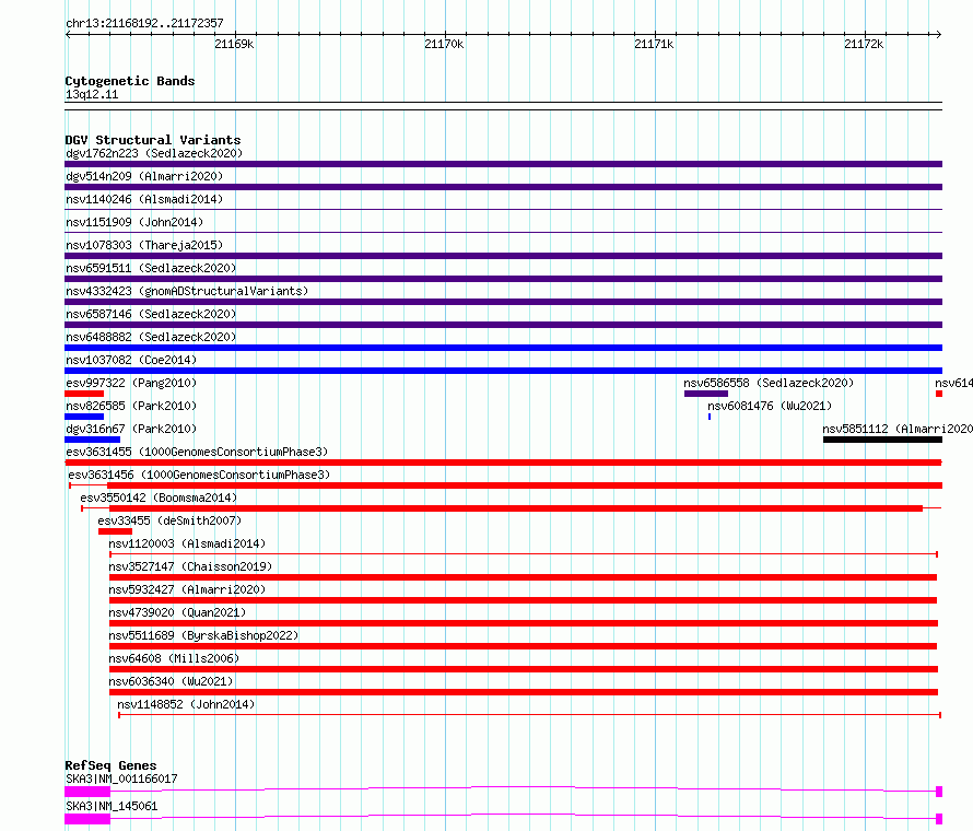 Variant DetailsVariant: esv3631455| Internal ID | 7018264 | | Landmark | | | Location Information | | | Cytoband | 13q12.11 | | Allele length | | Assembly | Allele length | | hg38 | 4166 | | hg19 | 4166 |