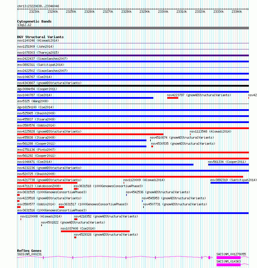 | | Variant Type | CNV gain | | Copy Number | | | Allele State | | | Allele Origin | | | Probe Count | | | Validation Flag | | | Merged Status | M | | Merged Variants | | | Supporting Variants | essv14669427 | | Samples | HG03571 | | Known Genes | SACS, SGCG | | Method | Sequencing | | Analysis | | | Platform | Multiple platforms | | Comments | | | Reference | 1000_Genomes_Consortium_Phase_3 | | Pubmed ID | 21293372 | | Accession Number(s) | esv3631516