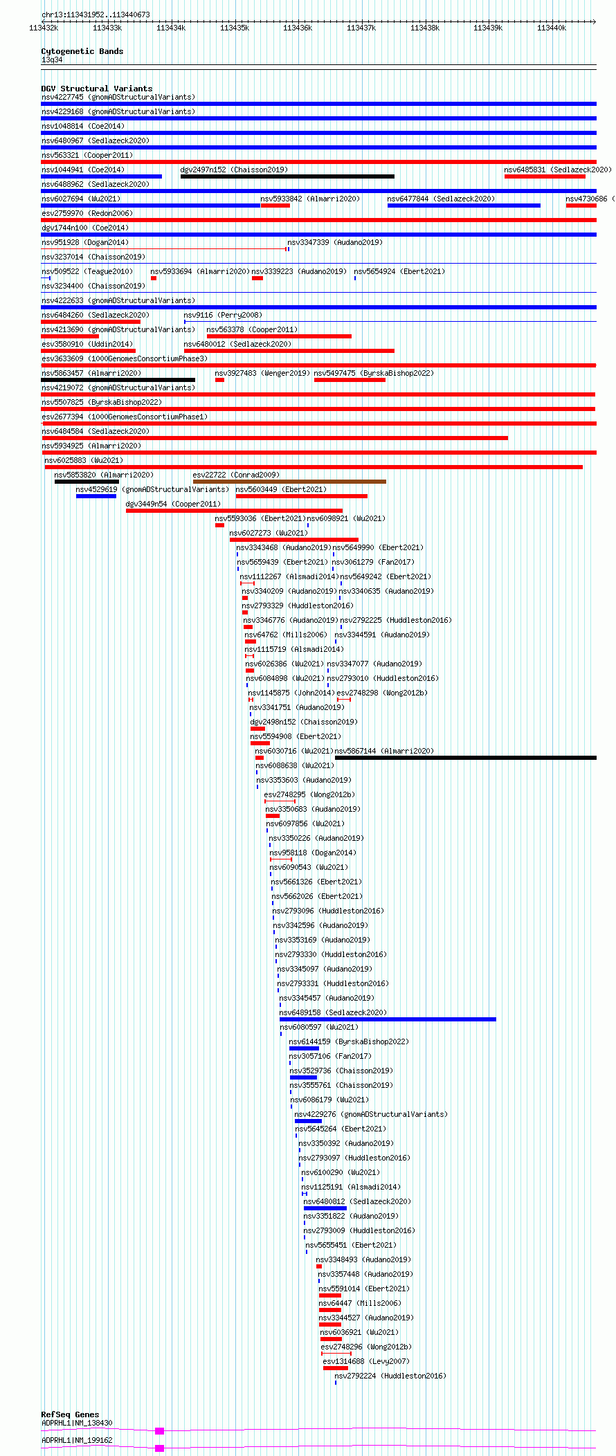 Variant DetailsVariant: esv3633609| Internal ID | 7020417 | | Landmark | | | Location Information | | | Cytoband | 13q34 | | Allele length | | Assembly | Allele length | | hg38 | 8722 | | hg19 | 8722 |