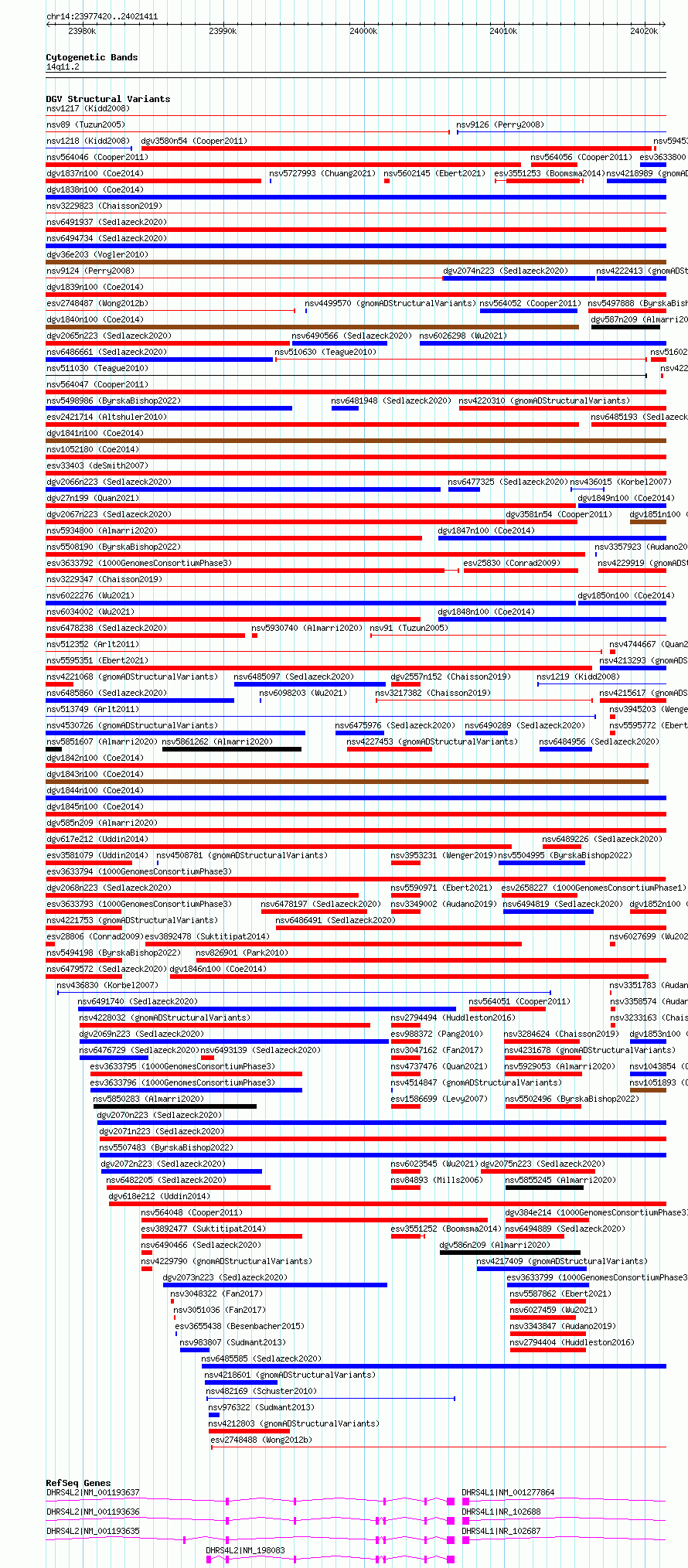 Variant DetailsVariant: esv3633794 | Internal ID | 7020600 | | Landmark | | | Location Information | | | Cytoband | 14q11.2 | | Allele length | | Assembly | Allele length | | hg38 | 43992 | | hg19 | 43992 |