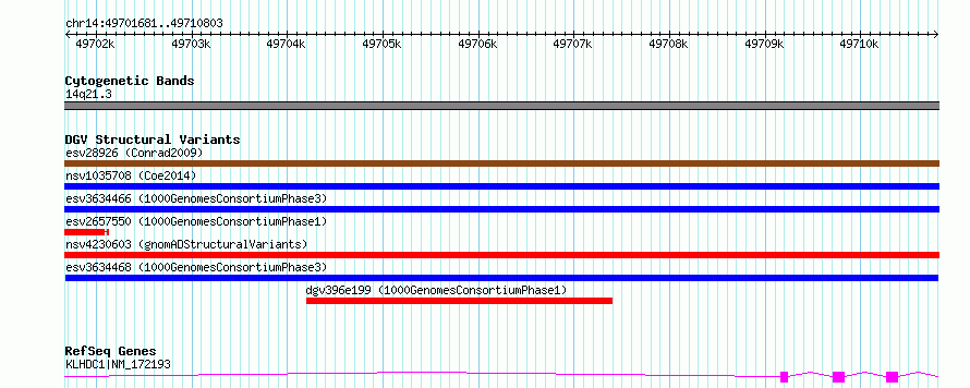 | Variant Type | CNV gain | Copy Number | | Allele State | | Allele Origin | | Probe Count | | Validation Flag | | Merged Status | M | Merged Variants | | Supporting Variants | essv15005252, essv15005253 | Samples | HG03452, HG03729 | Known Genes | KLHDC1 | Method | Sequencing | Analysis | | Platform | Multiple platforms | Comments | | Reference | 1000_Genomes_Consortium_Phase_3 | Pubmed ID | 21293372 | Accession Number(s) | esv3634468