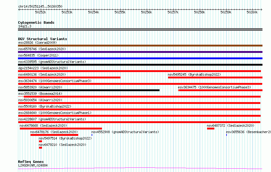 | | Variant Type | CNV loss | | Copy Number | | | Allele State | | | Allele Origin | | | Probe Count | | | Validation Flag | | | Merged Status | M | | Merged Variants | | | Supporting Variants | essv15005296, essv15005295, essv15005299, essv15005298, essv15005300, essv15005297 | | Samples | NA19397, NA20589, NA19026, NA19740, NA20797, HG00554 | | Known Genes | L2HGDH | | Method | Sequencing | | Analysis | | | Platform | Multiple platforms | | Comments | | | Reference | 1000_Genomes_Consortium_Phase_3 | | Pubmed ID | 21293372 | | Accession Number(s) | esv3634474