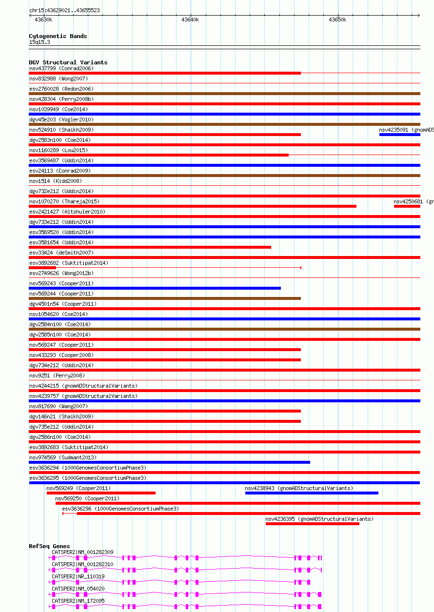 Variant DetailsVariant: esv3636295 | Internal ID | 6676404 | | Landmark | | | Location Information | | | Cytoband | 15q15.3 | | Allele length | | Assembly | Allele length | | hg38 | 26503 | | hg19 | 26503 |