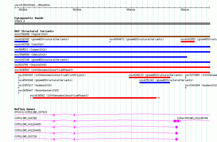 Known Genes | C15orf65, CCPG1, DYX1C1-CCPG1 |