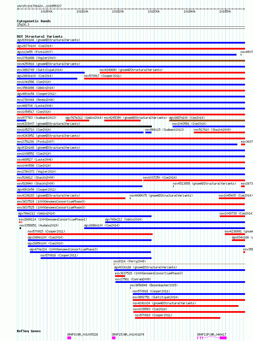 Variant DetailsVariant: esv3637525| Internal ID | 6677629 | | Landmark | | | Location Information | | | Cytoband | 15q26.3 | | Allele length | | Assembly | Allele length | | hg38 | 63708 | | hg19 | 63708 |