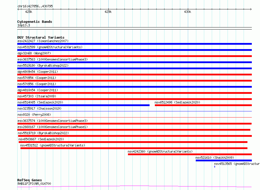 Variant DetailsVariant: esv3637574| Internal ID | 7024366 | | Landmark | | | Location Information | | | Cytoband | 16p13.3 | | Allele length | | Assembly | Allele length | | hg38 | 2940 | | hg19 | 2940 |