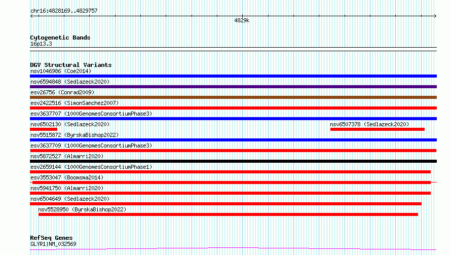 Variant DetailsVariant: esv3637709| Internal ID | 7024498 | | Landmark | | | Location Information | | | Cytoband | 16p13.3 | | Allele length | | Assembly | Allele length | | hg38 | 1589 | | hg19 | 1589 |