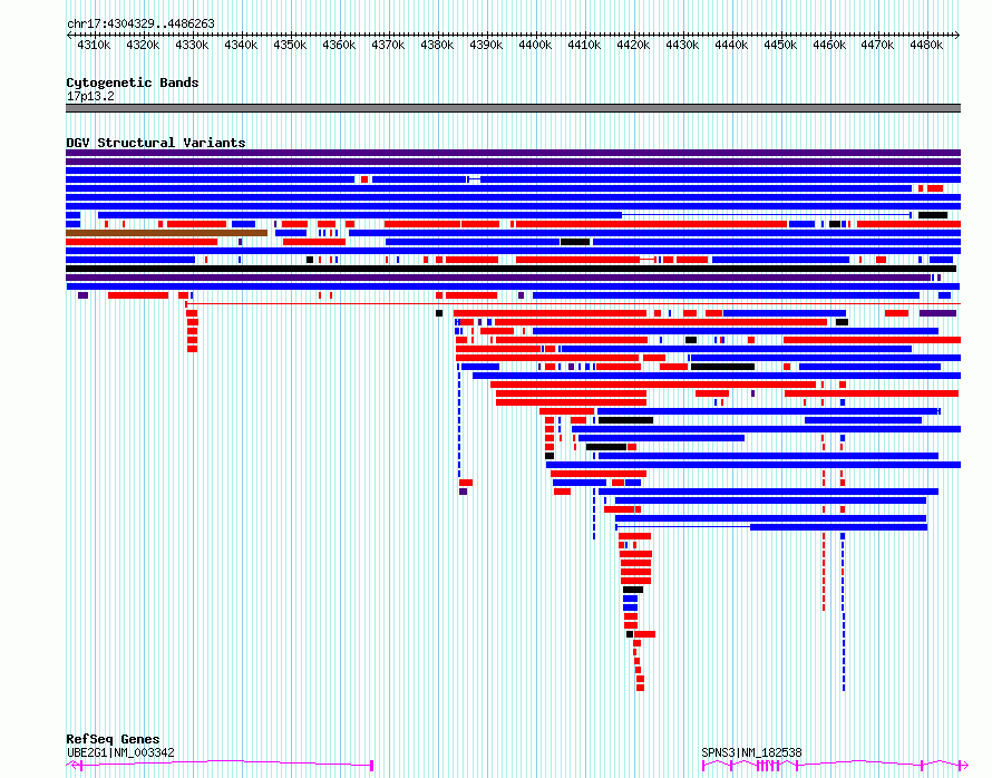 Variant DetailsVariant: esv3639773| Internal ID | 7026551 | | Landmark | | | Location Information | | | Cytoband | 17p13.2 | | Allele length | | Assembly | Allele length | | hg38 | 181935 | | hg19 | 181935 |
