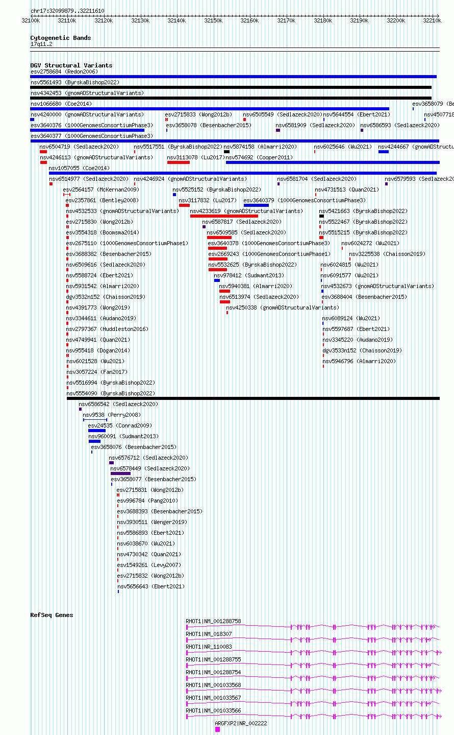 Variant DetailsVariant: esv3640377| Internal ID | 7027152 | | Landmark | | | Location Information | | | Cytoband | 17q11.2 | | Allele length | | Assembly | Allele length | | hg38 | 111732 | | hg19 | 111732 |