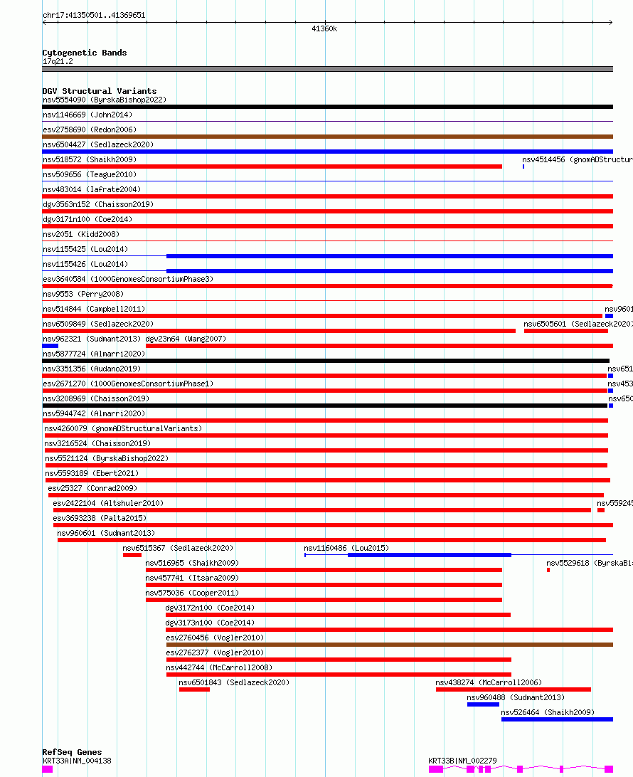 Variant DetailsVariant: esv3640584 | Internal ID | 7027359 | | Landmark | | | Location Information | | | Cytoband | 17q21.2 | | Allele length | | Assembly | Allele length | | hg38 | 19151 | | hg19 | 19151 |
