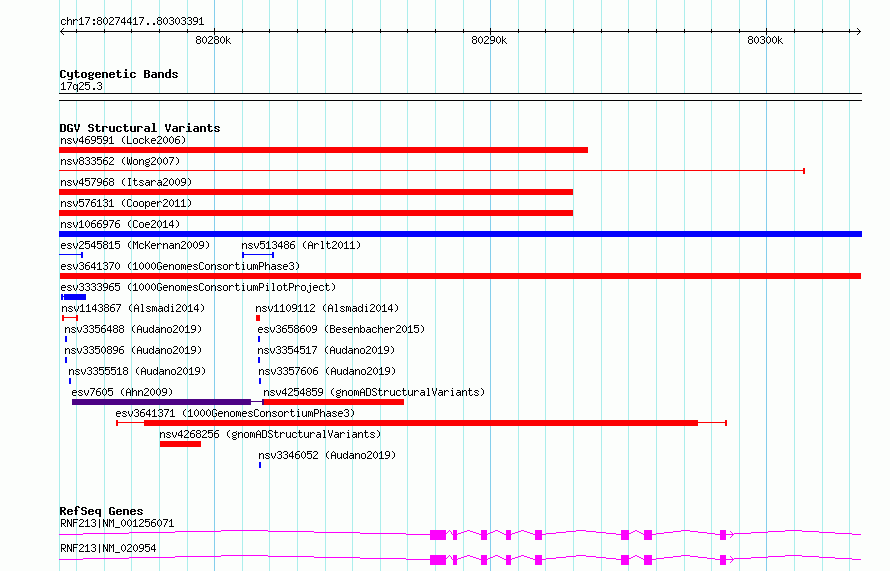 Variant DetailsVariant: esv3641370| Internal ID | 6681455 | | Landmark | | | Location Information | | | Cytoband | 17q25.3 | | Allele length | | Assembly | Allele length | | hg38 | 28975 | | hg19 | 28976 |