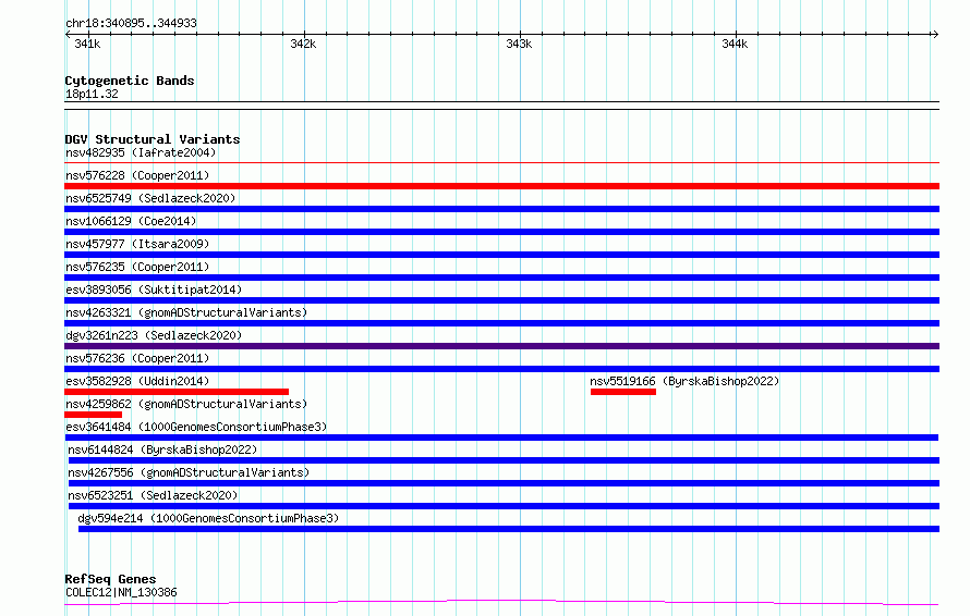 Variant DetailsVariant: esv3641484| Internal ID | 7028258 | | Landmark | | | Location Information | | | Cytoband | 18p11.32 | | Allele length | | Assembly | Allele length | | hg38 | 4039 | | hg19 | 4039 |