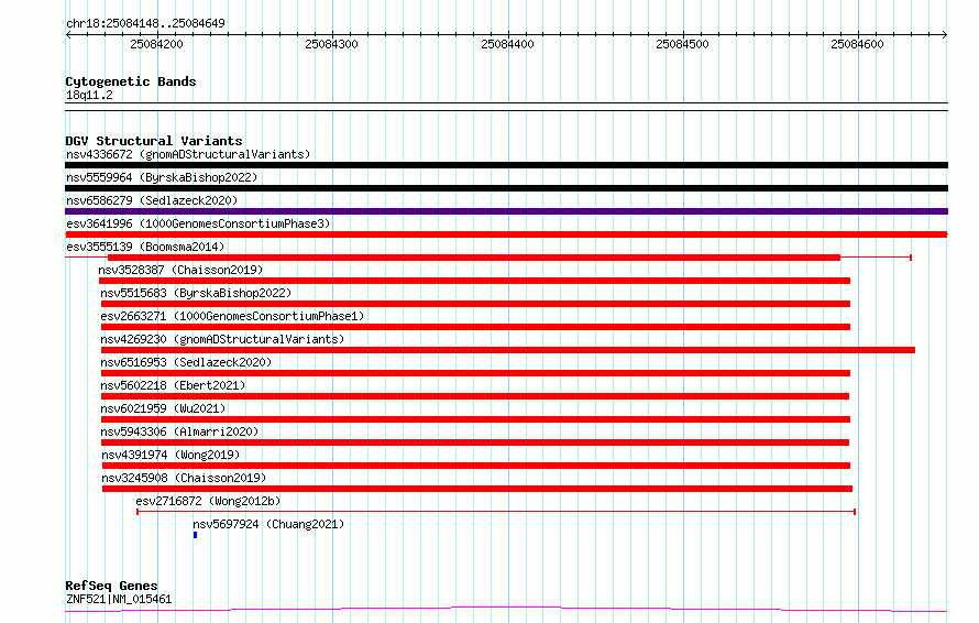 Variant DetailsVariant: esv3641996 | Internal ID | 7028767 | | Landmark | | | Location Information | | | Cytoband | 18q11.2 | | Allele length | | Assembly | Allele length | | hg38 | 502 | | hg19 | 502 |
