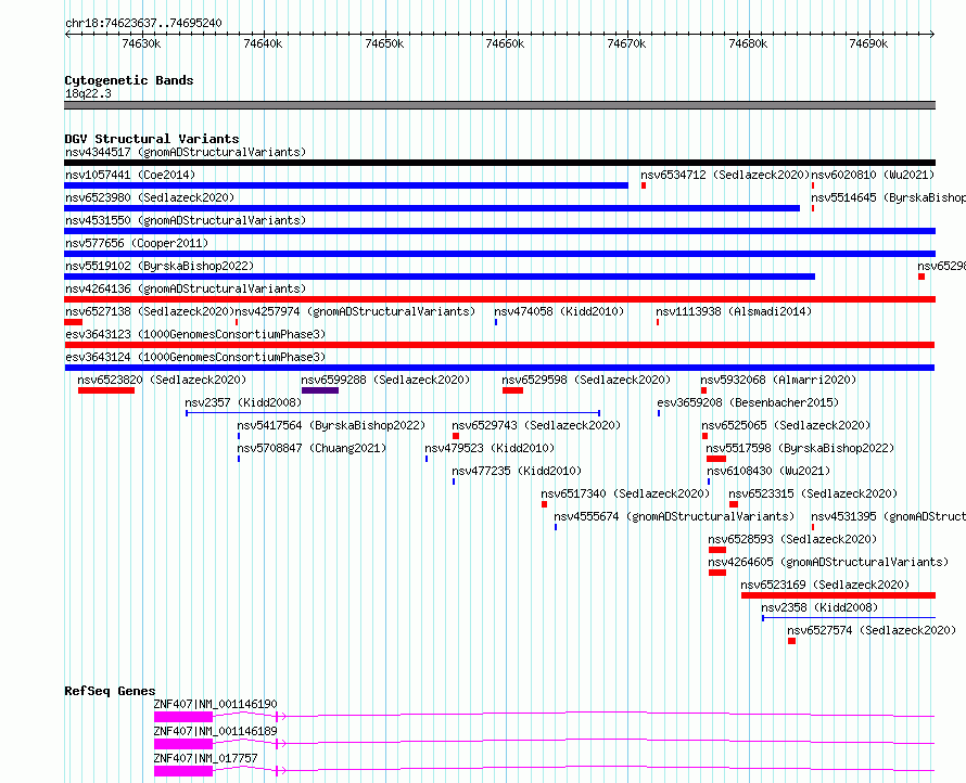 Variant DetailsVariant: esv3643124| Internal ID | 7029893 | | Landmark | | | Location Information | | | Cytoband | 18q22.3 | | Allele length | | Assembly | Allele length | | hg38 | 71604 | | hg19 | 71604 |