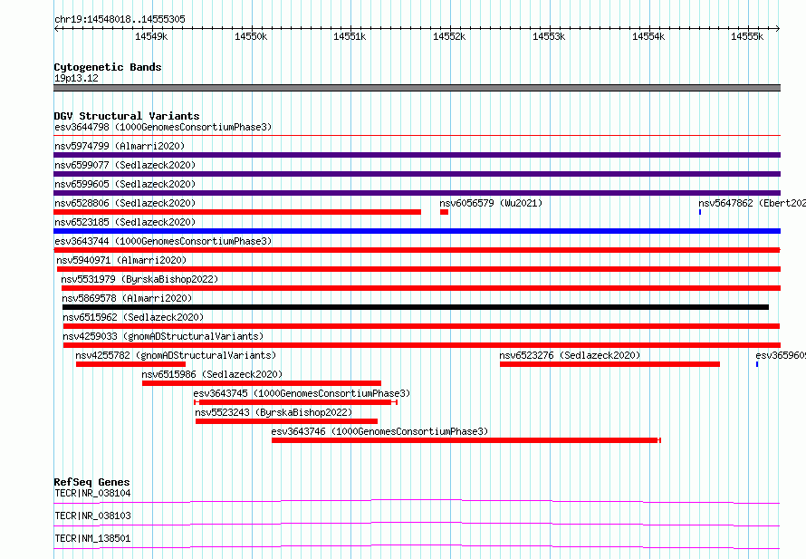 Variant DetailsVariant: esv3643744 | Internal ID | 7030502 | | Landmark | | | Location Information | | | Cytoband | 19p13.12 | | Allele length | | Assembly | Allele length | | hg38 | 7288 | | hg19 | 7288 |