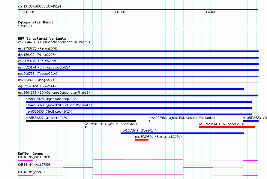 Variant DetailsVariant: esv3644193| Internal ID | 7030949 | | Landmark | | | Location Information | | | Cytoband | 19q13.11 | | Allele length | | Assembly | Allele length | | hg38 | 26362 | | hg19 | 26362 |