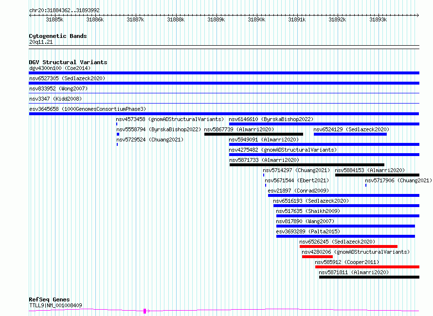 Variant DetailsVariant: esv3645658 | Internal ID | 7032407 | | Landmark | | | Location Information | | | Cytoband | 20q11.21 | | Allele length | | Assembly | Allele length | | hg38 | 9631 | | hg19 | 9631 |