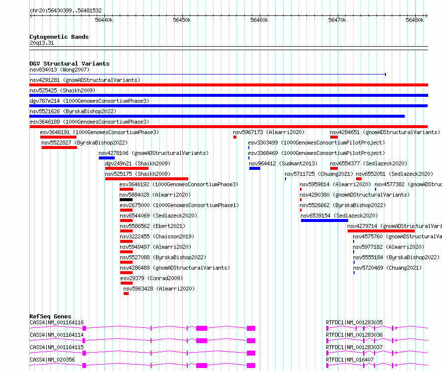 Variant DetailsVariant: esv3646189| Internal ID | 7032934 | | Landmark | | | Location Information | | | Cytoband | 20q13.31 | | Allele length | | Assembly | Allele length | | hg38 | 51134 | | hg19 | 51134 |